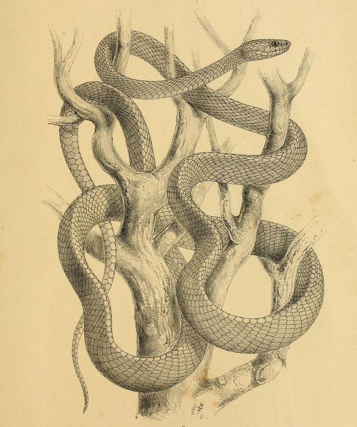 A pale serpent slithered from the gap between the roots of the elder tree. Its scales were powder white and it had eyes that burned red like coals. The snake curled itself on the chest of the dead woman and raised its head to look at Quirrell.